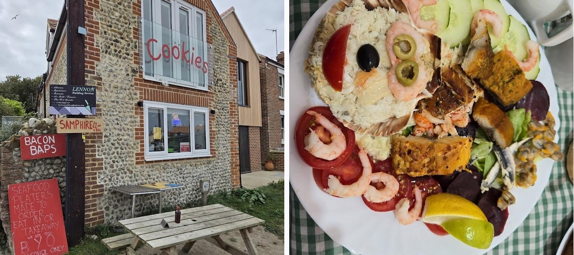 A truly authentic experience! A generously sized plate of seafood and salad, as fresh as it comes and attractively served, at a far lower price than you'd pay in a pub, let alone a restaurant. We sat outside in the sunshine, at a wonky table set on the sandy ground outside the old fashioned café (and it felt more like a homely café than a restaurant, and all the better for that) with other diners around us. They do have a limited number of tables indoors. If you need the loo, you walk round to the pub nearby and pay 20p for the privilege of using theirs in the courtyard. And - be warned - Cookie's is a CASH ONLY establishment, they don't take cards! Lovely food, great range of traditional puddings - except we didn't have room, which was a bit of a shame! We're looking forward to our next visit!